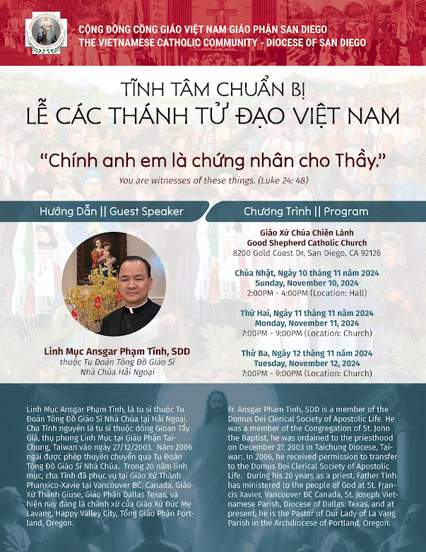 Pastor in Charge: Fr. John Phan — (858) 271-0207 ext. 1202
